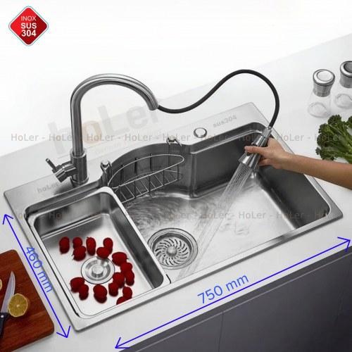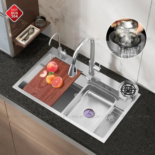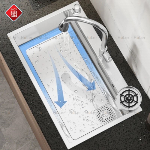 Lòng chậu sâu giúp bạn để được nhiều vật dụng nhà bếp hay rửa rau củ một cách thoải mái, dễ dàng.