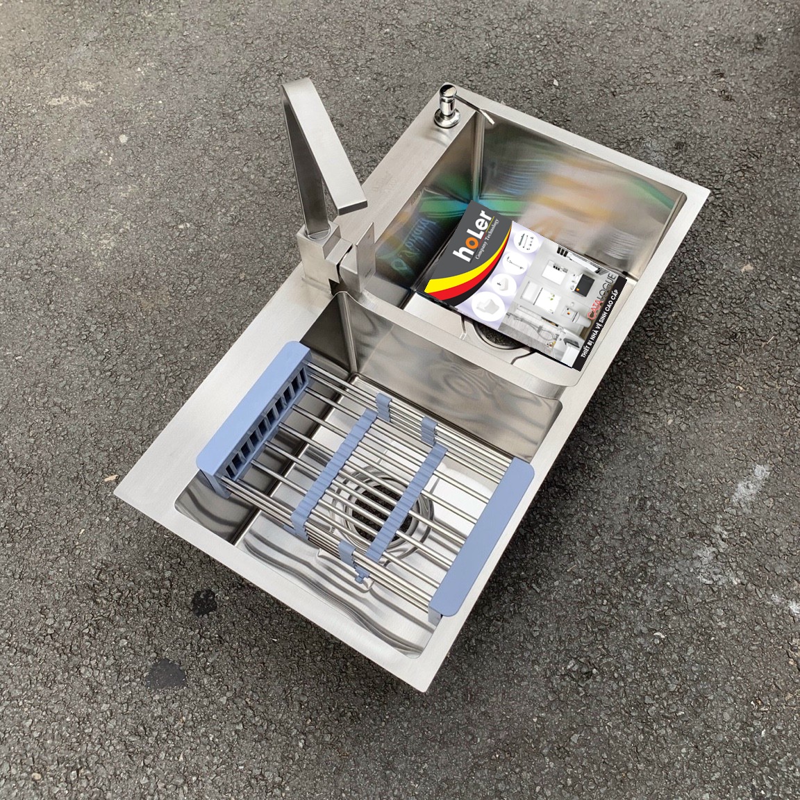 Chậu rửa bát được sản xuất trên công nghệ tiên tiến của Đức dập liền nguyên khối ( Không hàn mài )