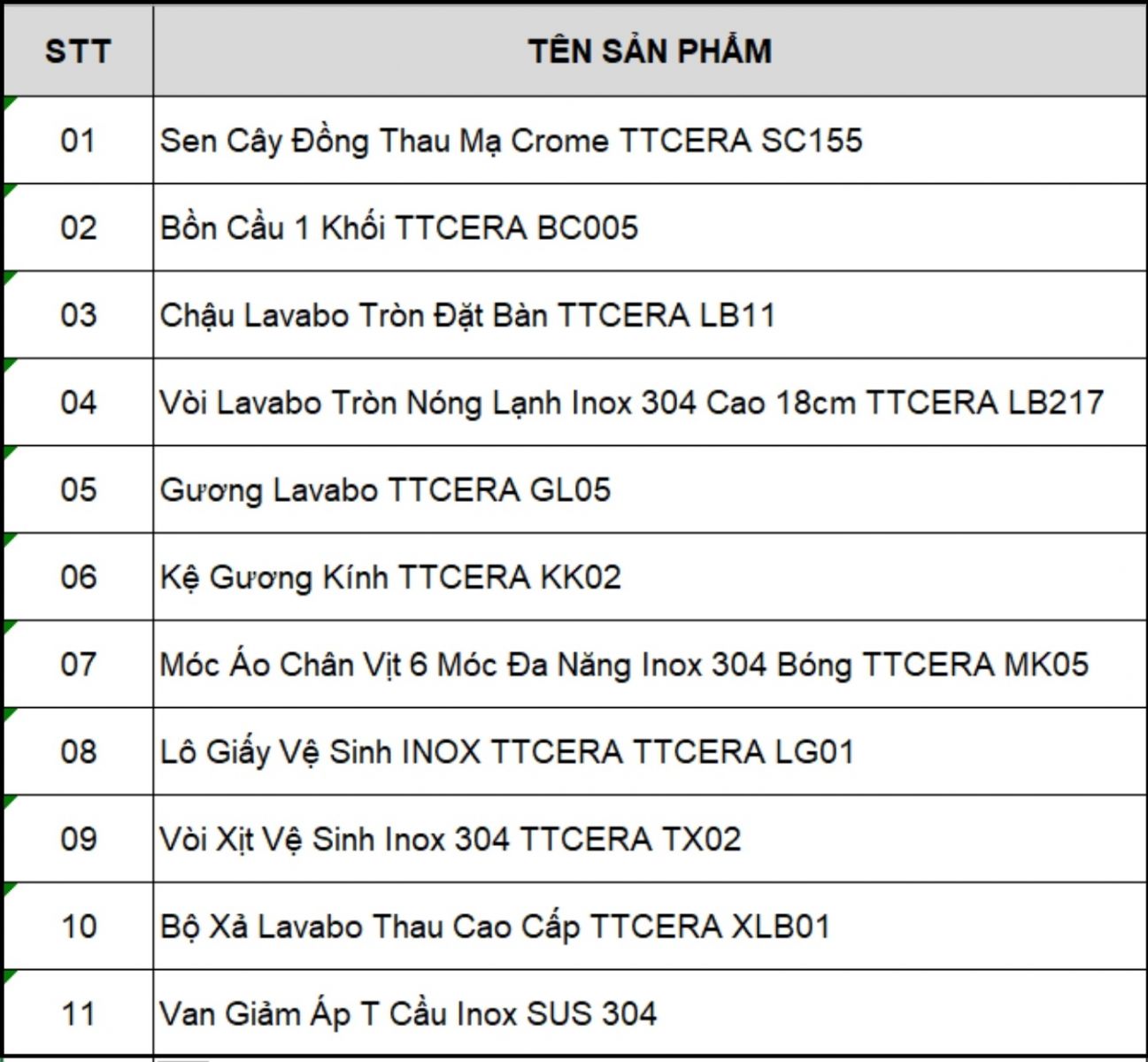 Men sứ bảo hành 20 năm