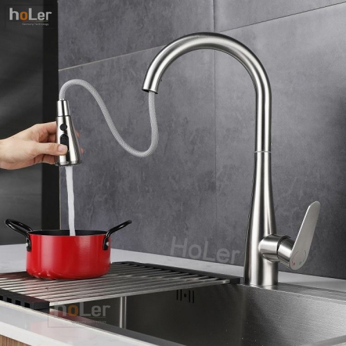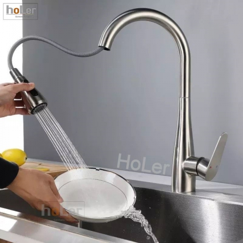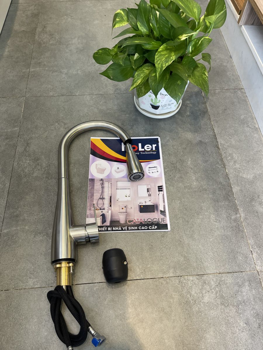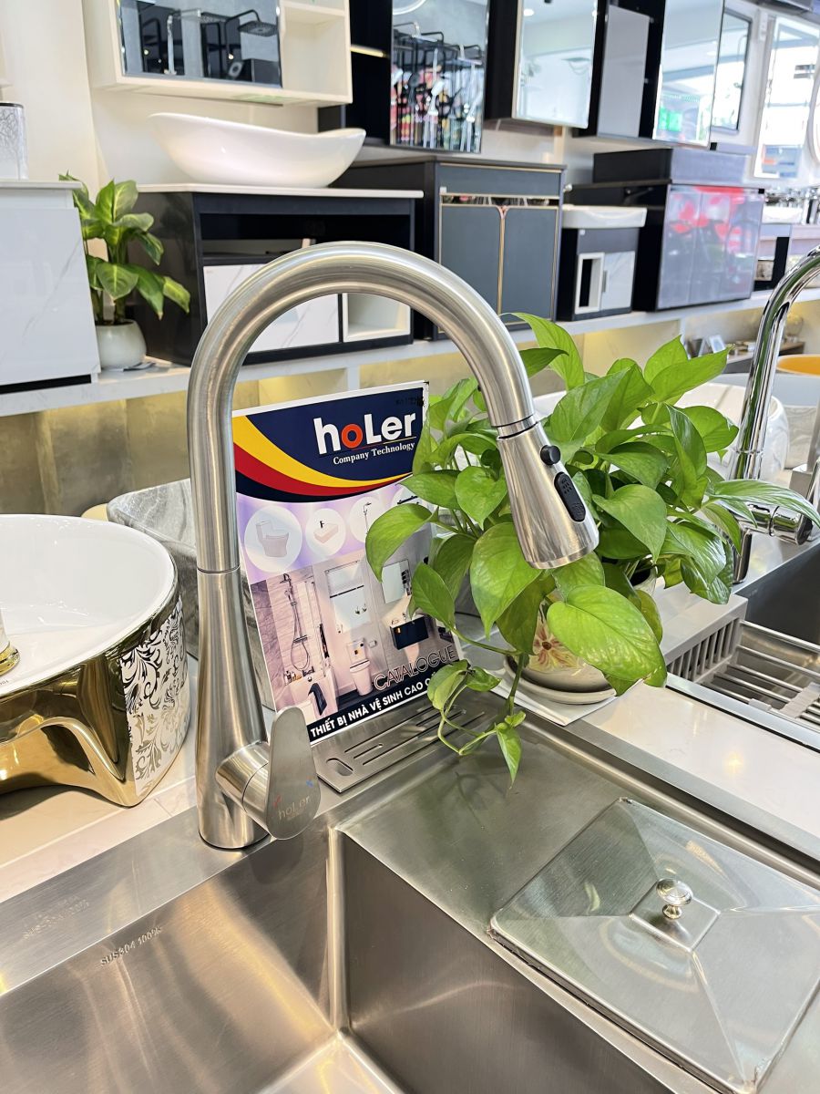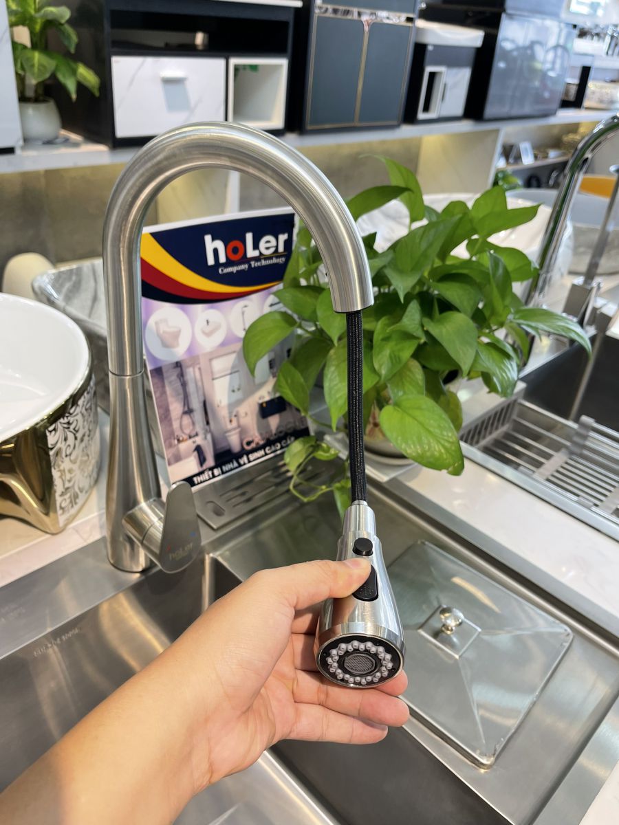 * Đầu vòi có thể kéo ra ngoài, có 2 chế độ chảy, tăng áp và thông thường